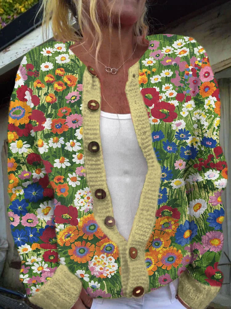 Women's Cardigan | Patterned Button Front Long Sleeve